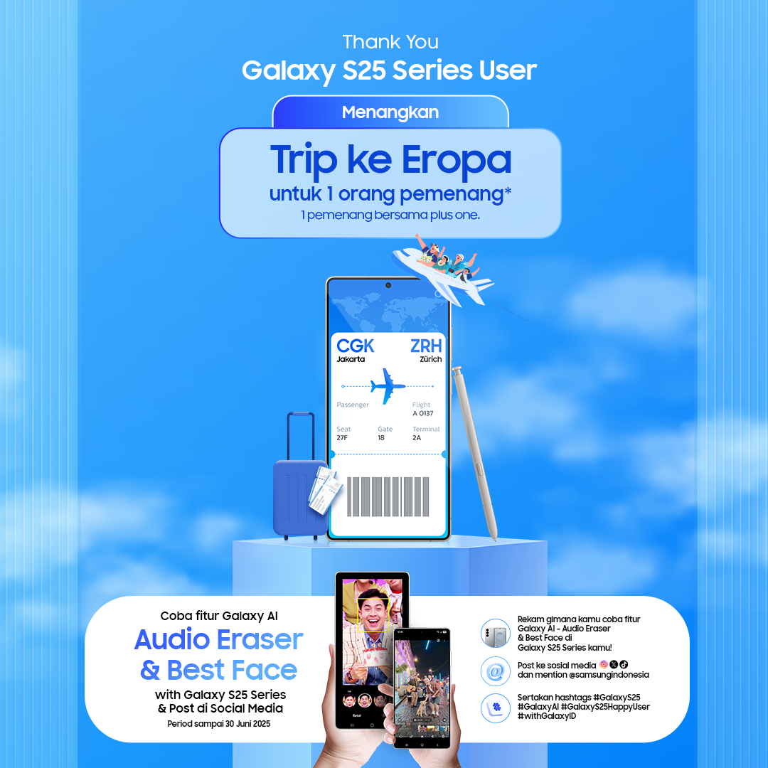 Bagi para pengguna setia Galaxy atau kamu yang baru saja upgrade ke seri S25, program ini adalah cara Samsung mengapresiasi kamu. Dan yang paling menarik: kamu bisa ajak plus one, entah itu pasangan, sahabat, atau keluarga. Siap-siap kemas koper dan paspor kamu—Eropa memanggil!
